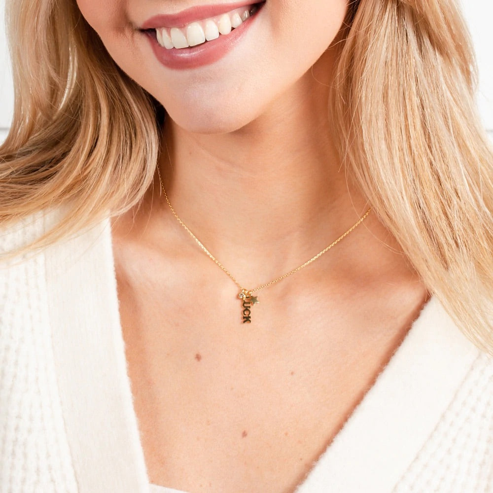 The All Luck Charm Necklace is the perfect lucky charm to add to. your jewelry collection! This dainty Irish necklace is perfect for St. Patrick's Day!