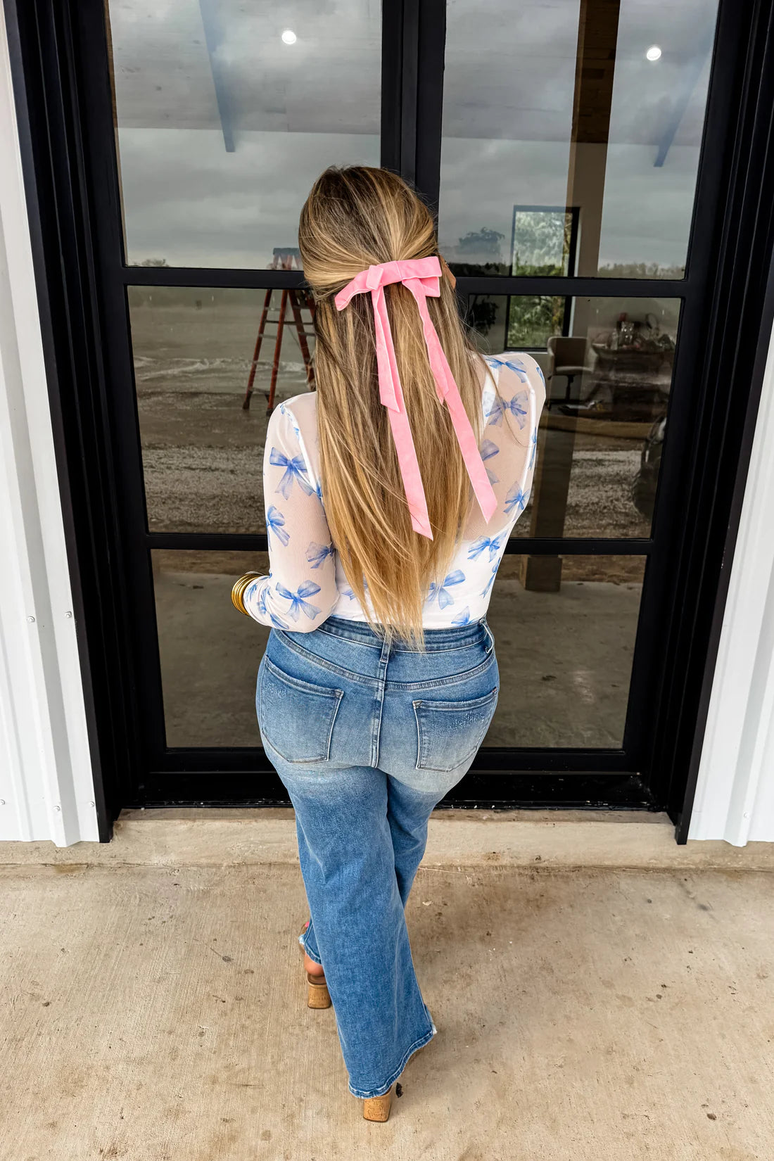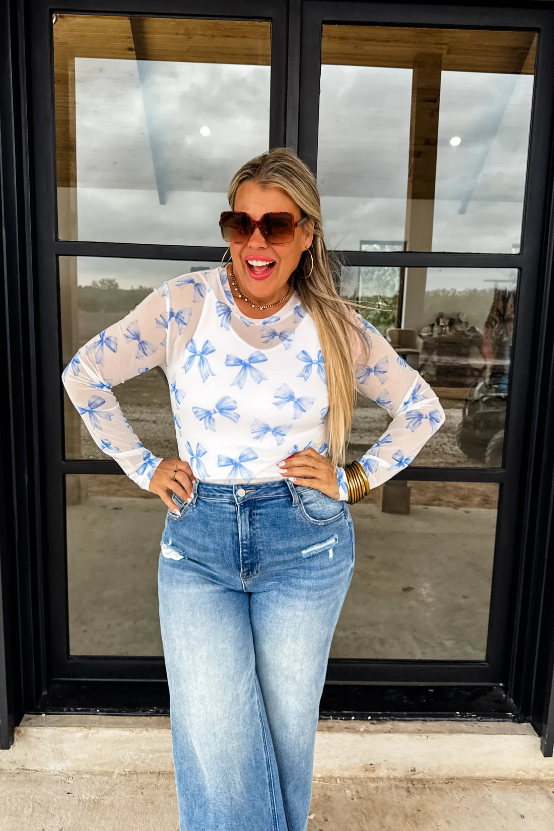Our new Bow Mesh Tops are HERE!! Super cute for layering! Stretchy mesh print long-sleeve top features a totally sheer design. Perfect worn alone or paired under your favorite Lola cardigan, vest or sweater! Crew neck and thumbhole details sleeves.