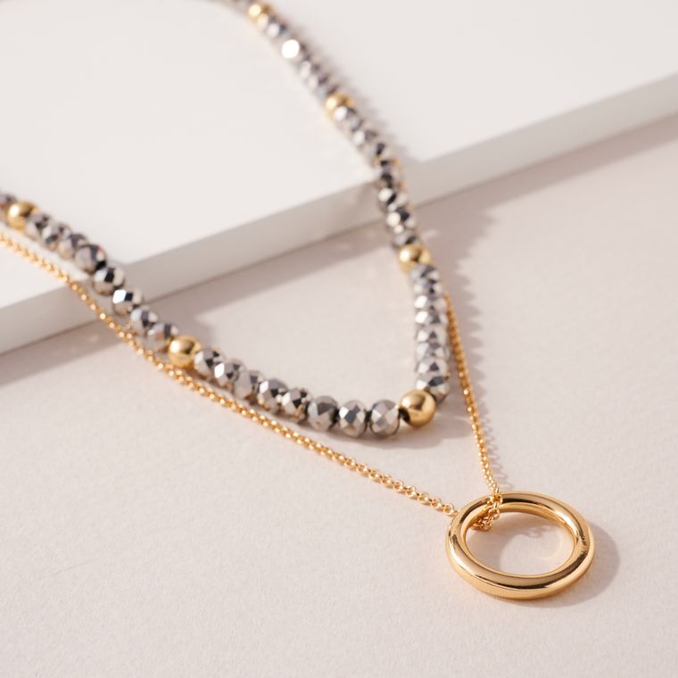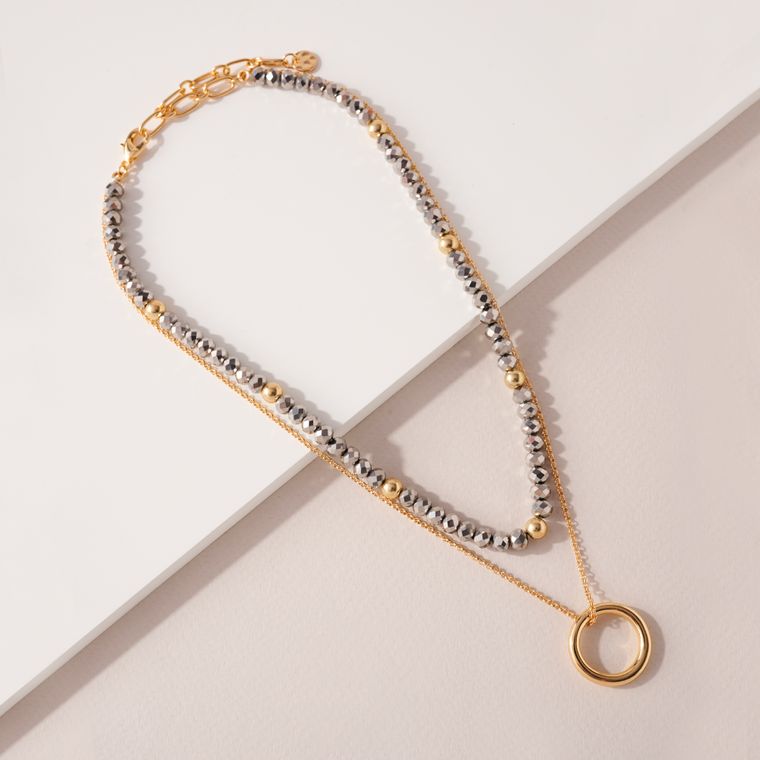 Avenue Zoe - Glass Bead Circle Charm Layered Necklace
