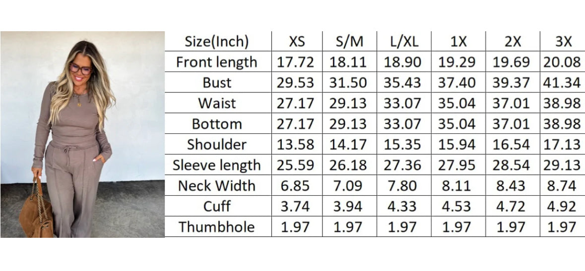 These sleek ribbed fabric lounge sets combine comfort and effortless style. The cute top features flattering side ruching, and long sleeve with thumbholes. Bottoms are relaxed fit with working drawstring and wide-legs. Pair this cute set with sneakers or slides for an easy, put-together look that’s as comfortable as it is chic.