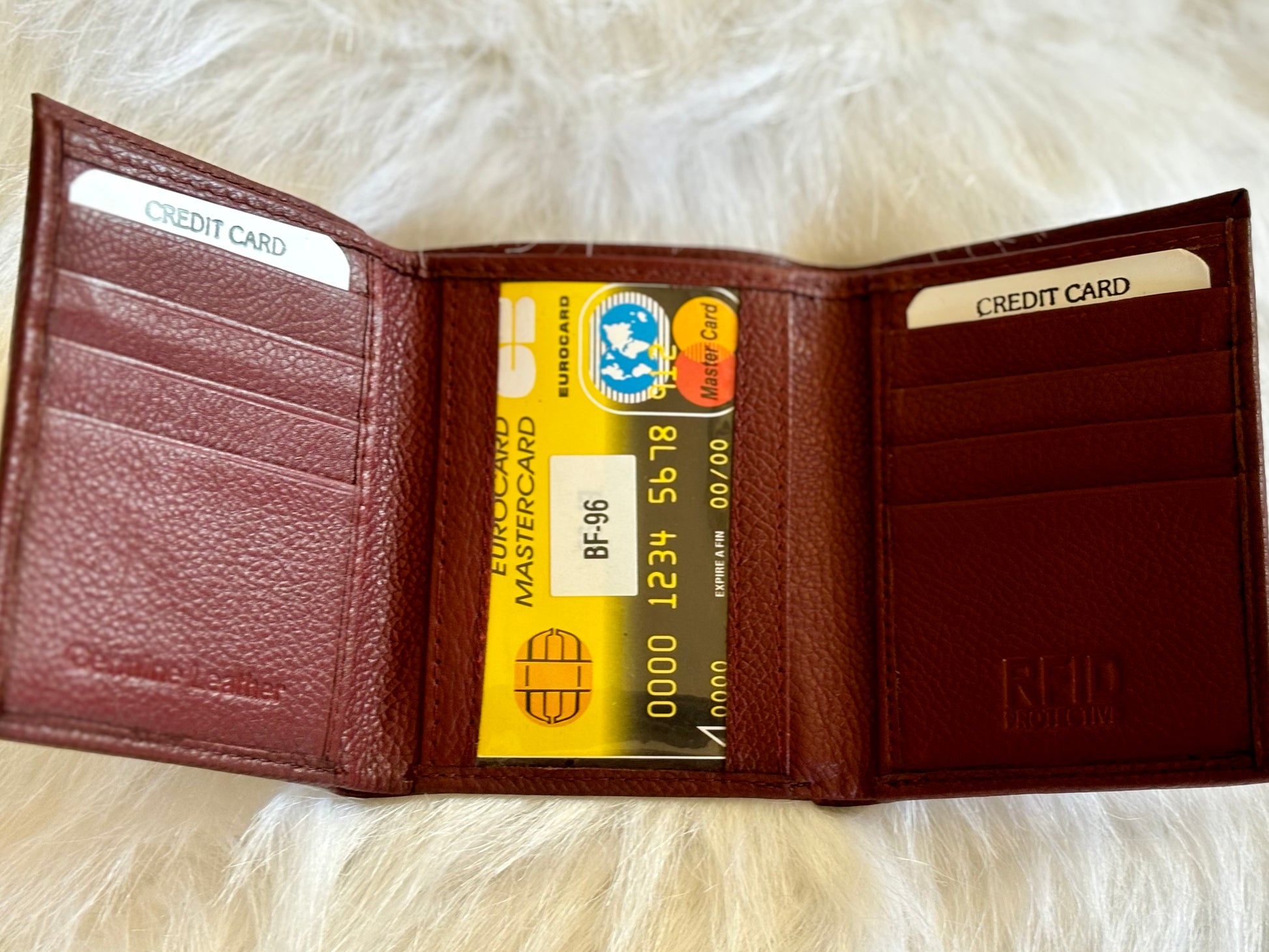 Our Umo Lorenzo wallets are crafted from genuine leather making them an ideal gift for that special man in your life. Italian Genuine Cow Leather RFID Protection Features 6 pockets for credit cards, with extra storage pockets beneath the credit card pockets ID card window 2 section bill fold. One Size 100% Leather Do Not Wash