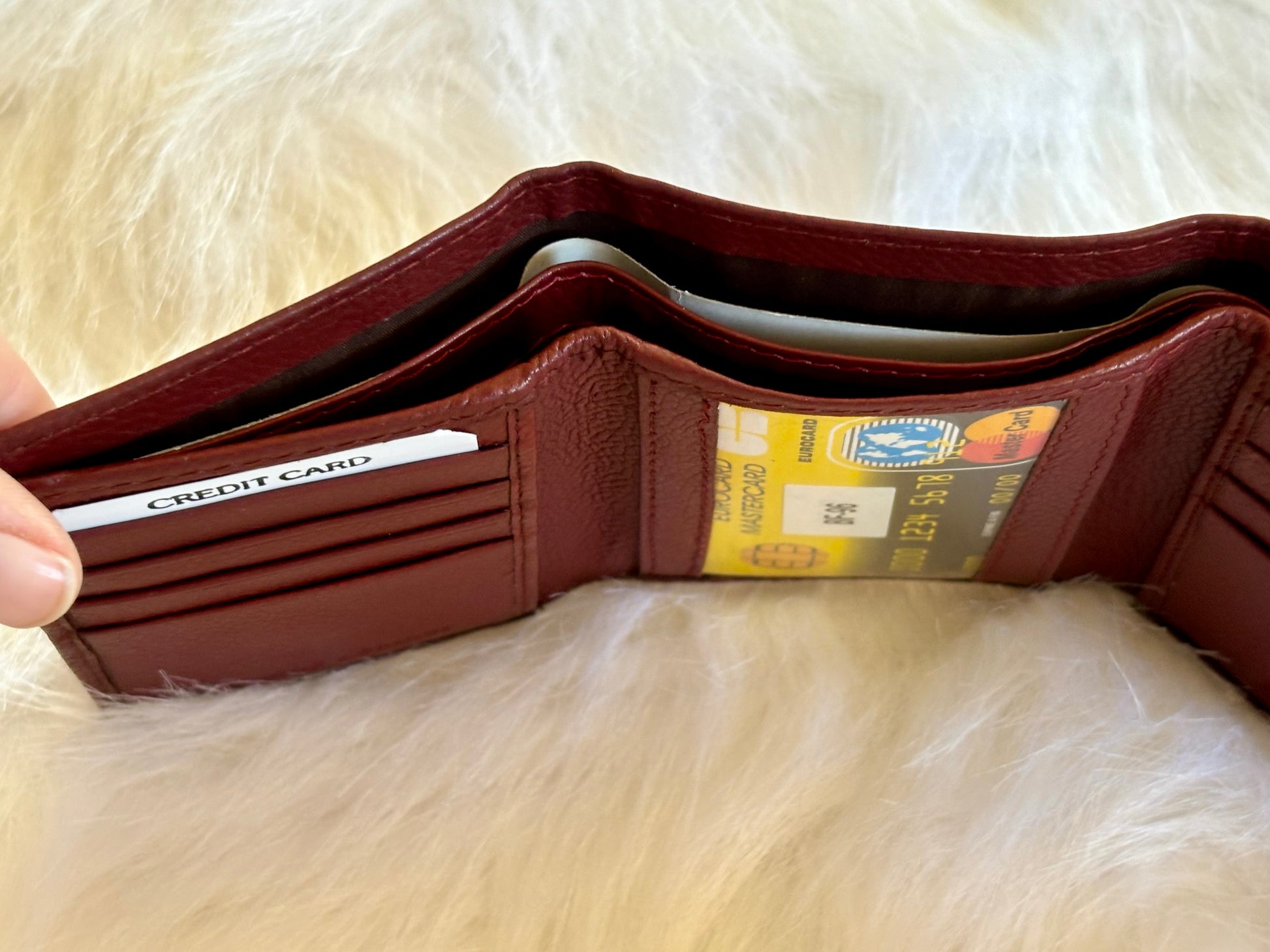 RFID Genuine Leather Tri-Fold Wallet: LightBrown