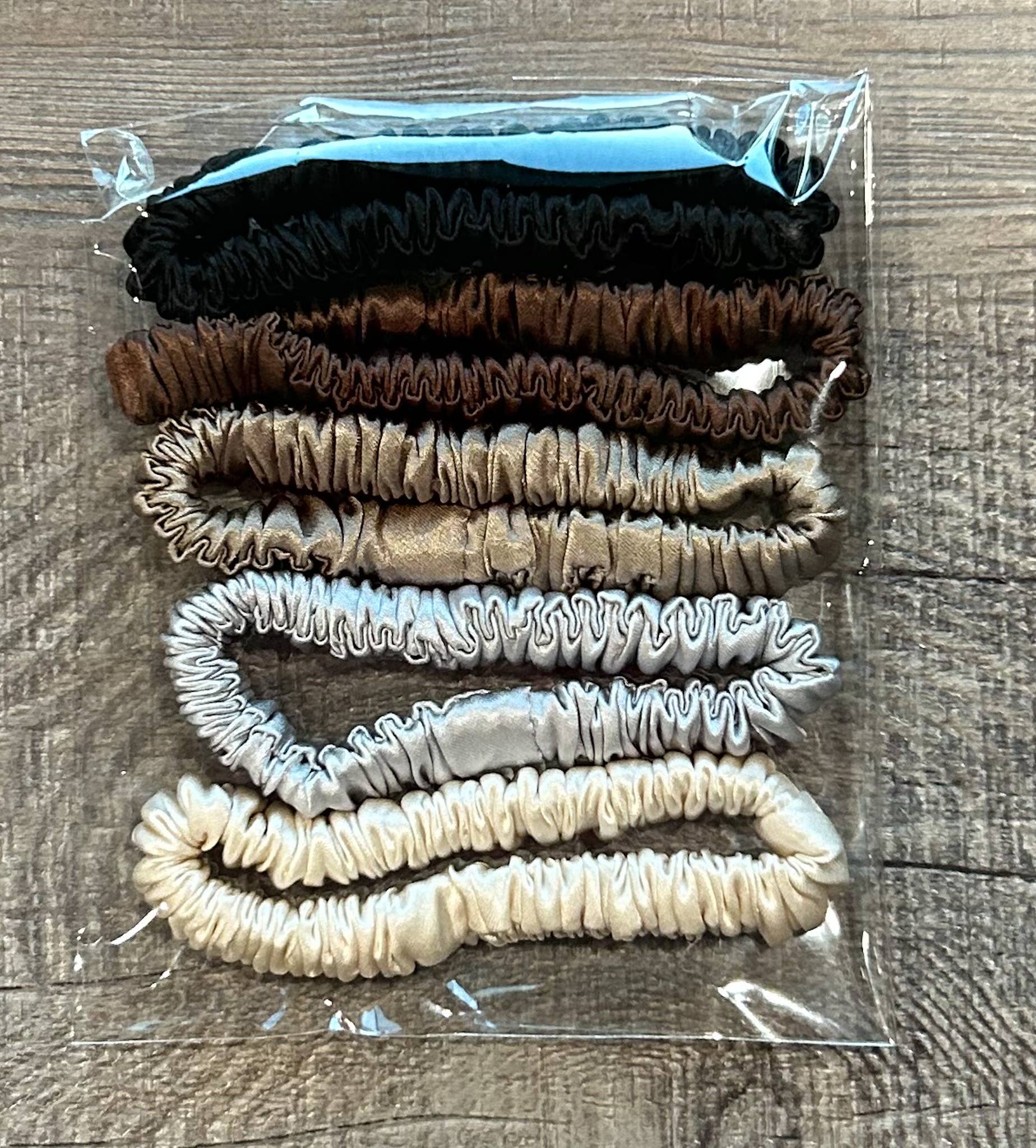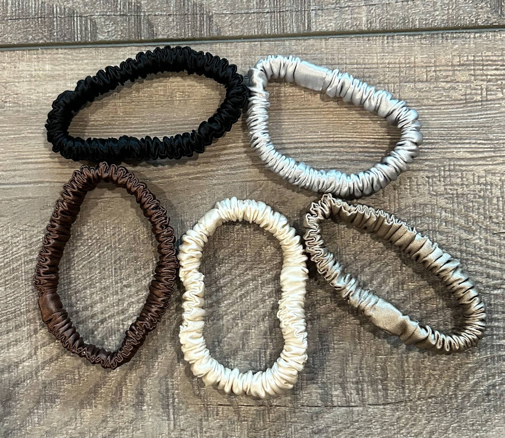 Silk Skinny Scrunchy Hair Ties Set of 5 Black Brown