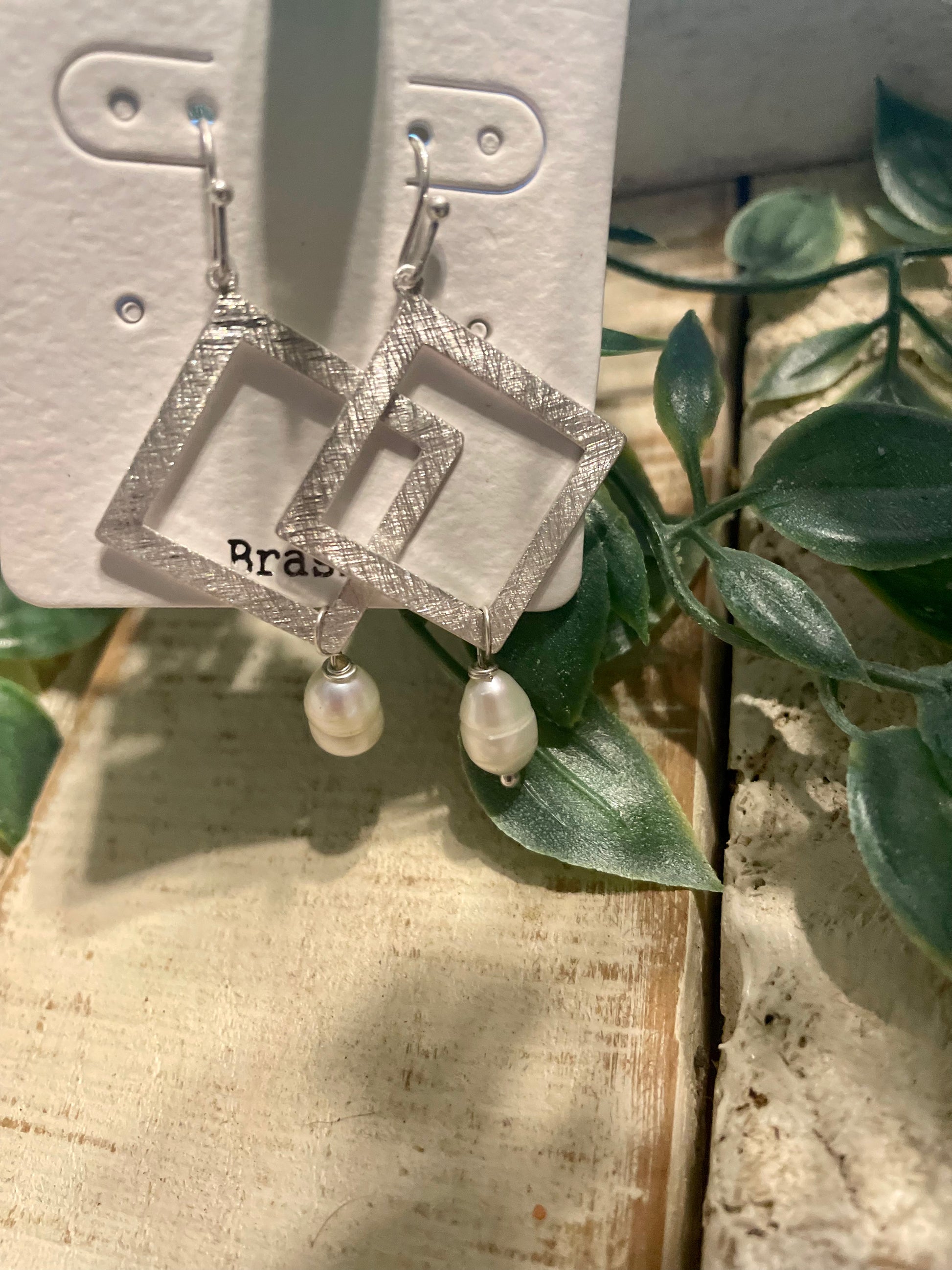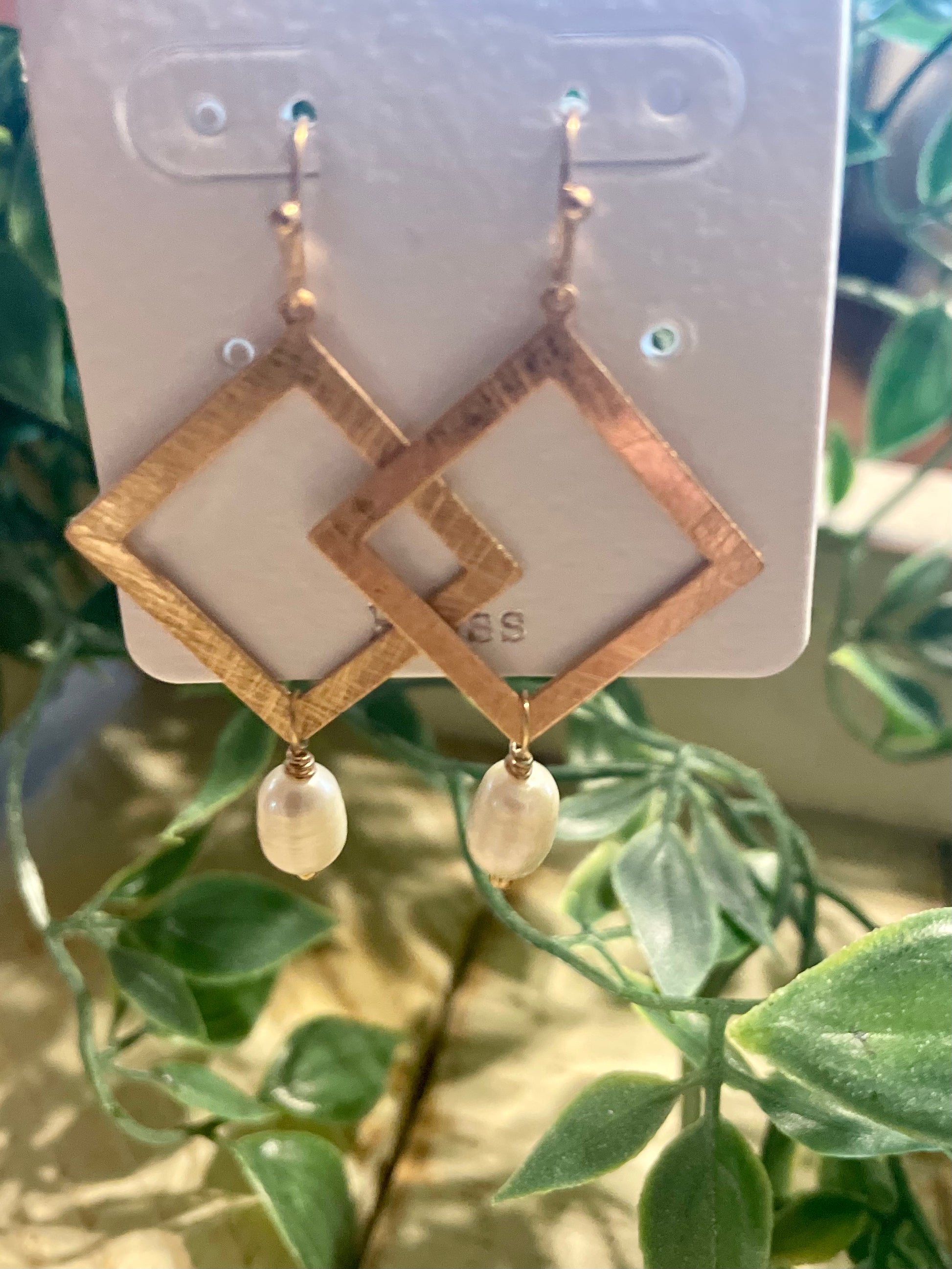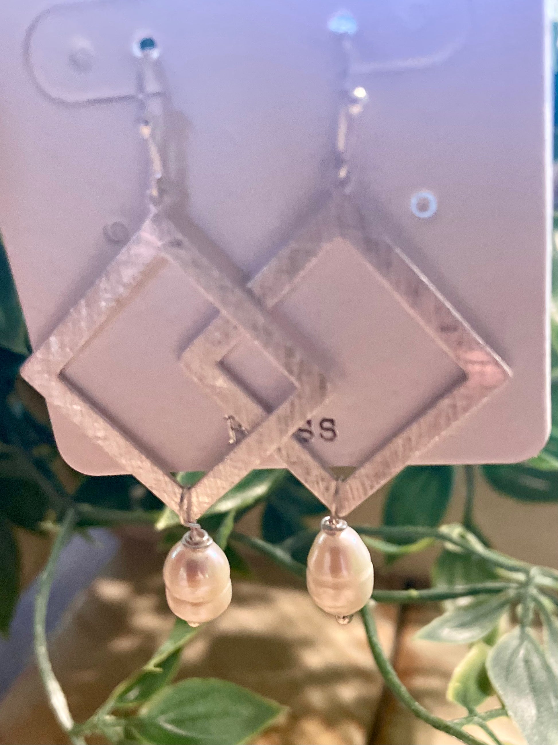 Dainty dangle earrings. Faux pearl dangles. Available in gold or silver.