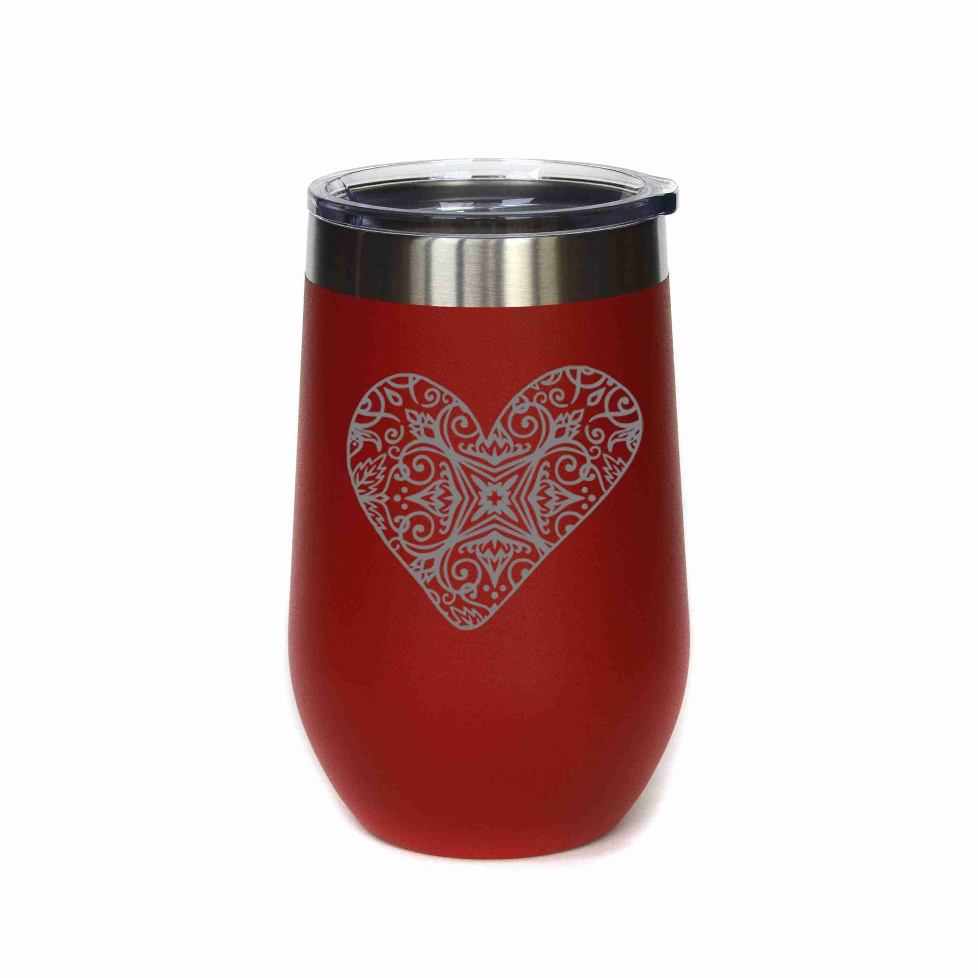 Engraved 16 oz wine tumbler with a durable powder coated color. All tumblers are engraved to insure the writing will never peal or fade. This tumbler comes with the phrase "Heart Design" Size- 12 oz. or 16 oz. Temp- Hot/Cold Durable Powder Coated Finish Hand Wash Recommended Do Not Microwave Keywords: Tumbler, Tumblers, Wine Cups, Drinkware, Stainless Steel Tumbler, Insulated Tumbler, Wine Tumbler, Wine Tumblers, Wine Cups, Gift For Her, Engraved, valentines day, love, Valentine's Day Decor, valentine gift
